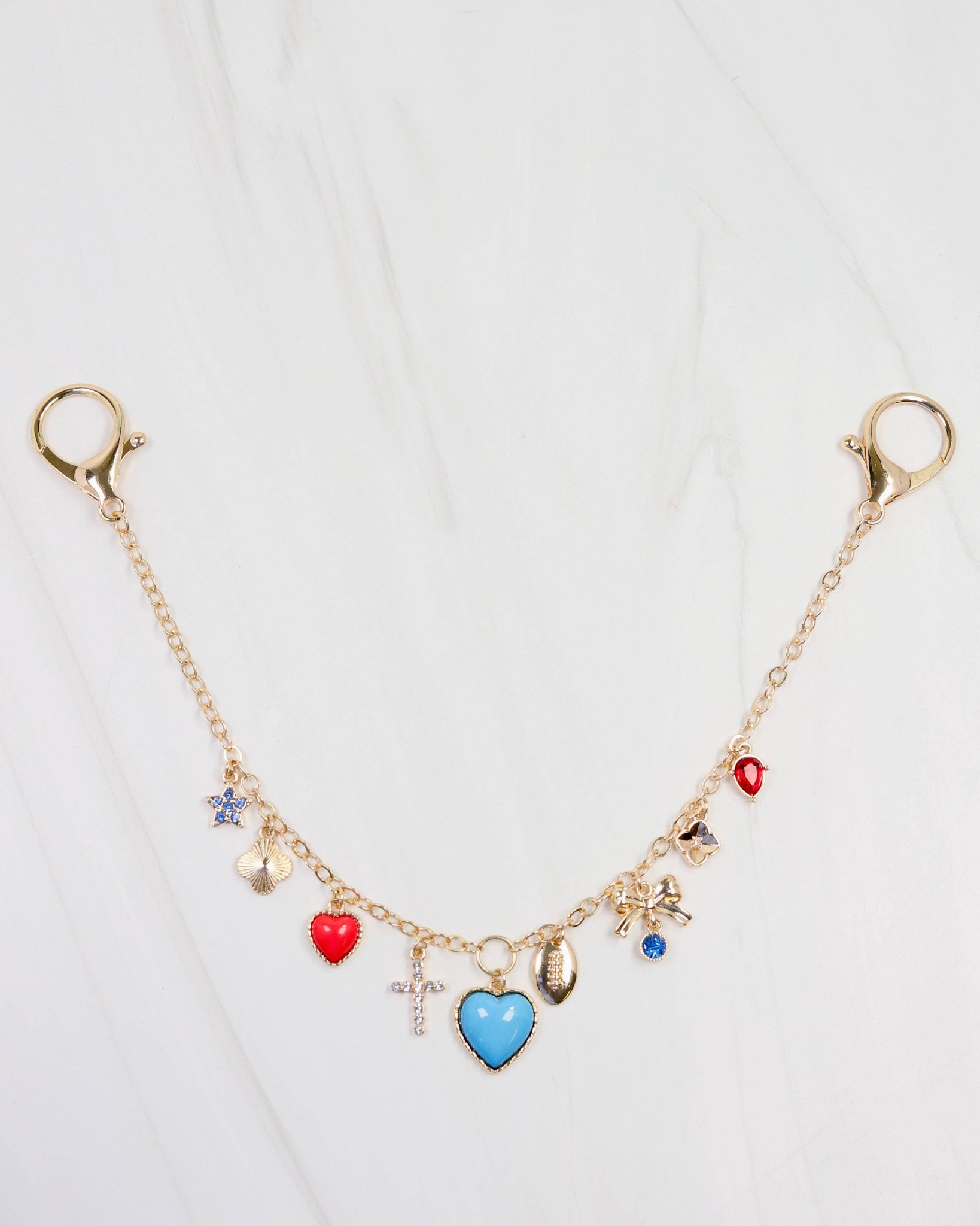 Add a stylish touch to your gameday look with the Avery Bag Chain in Royal Blue and White. This charming accessory pairs beautifully with our Serafina Scarf Chain for a layered, fashionable statement. Show your spirit effortlessly while keeping your bag on trend and uniquely yours.