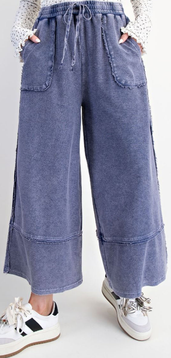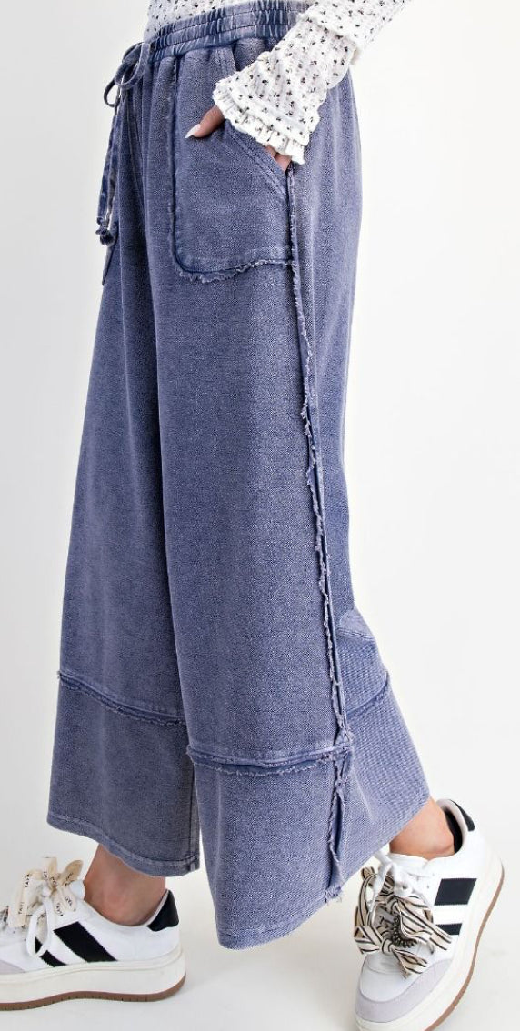 MINERAL WASHED TERRY KNIT PALAZZO PANTS