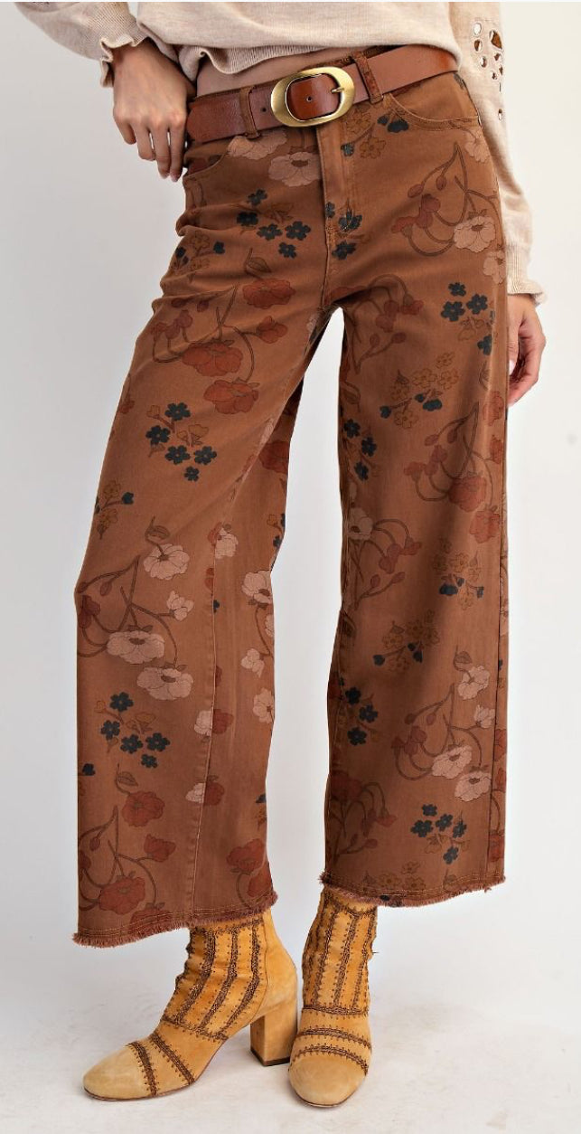 FLORAL PRINTED WASHED STRETCH TWILL PANTS