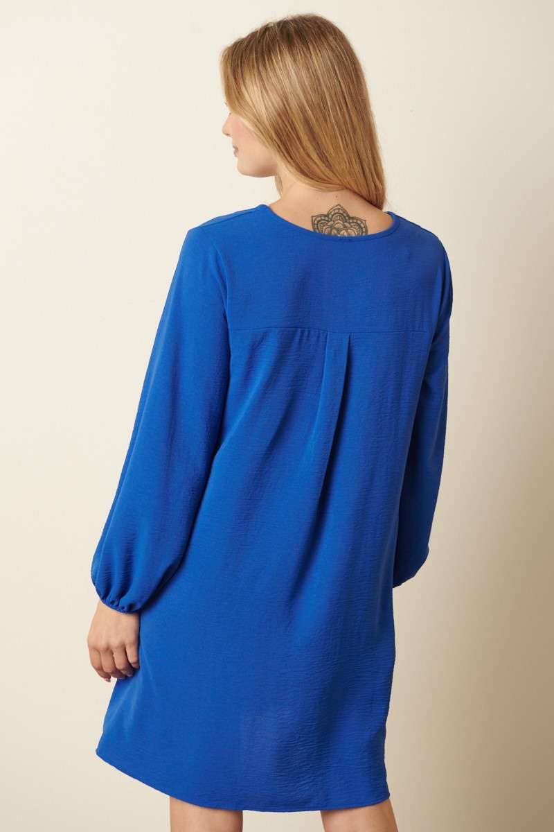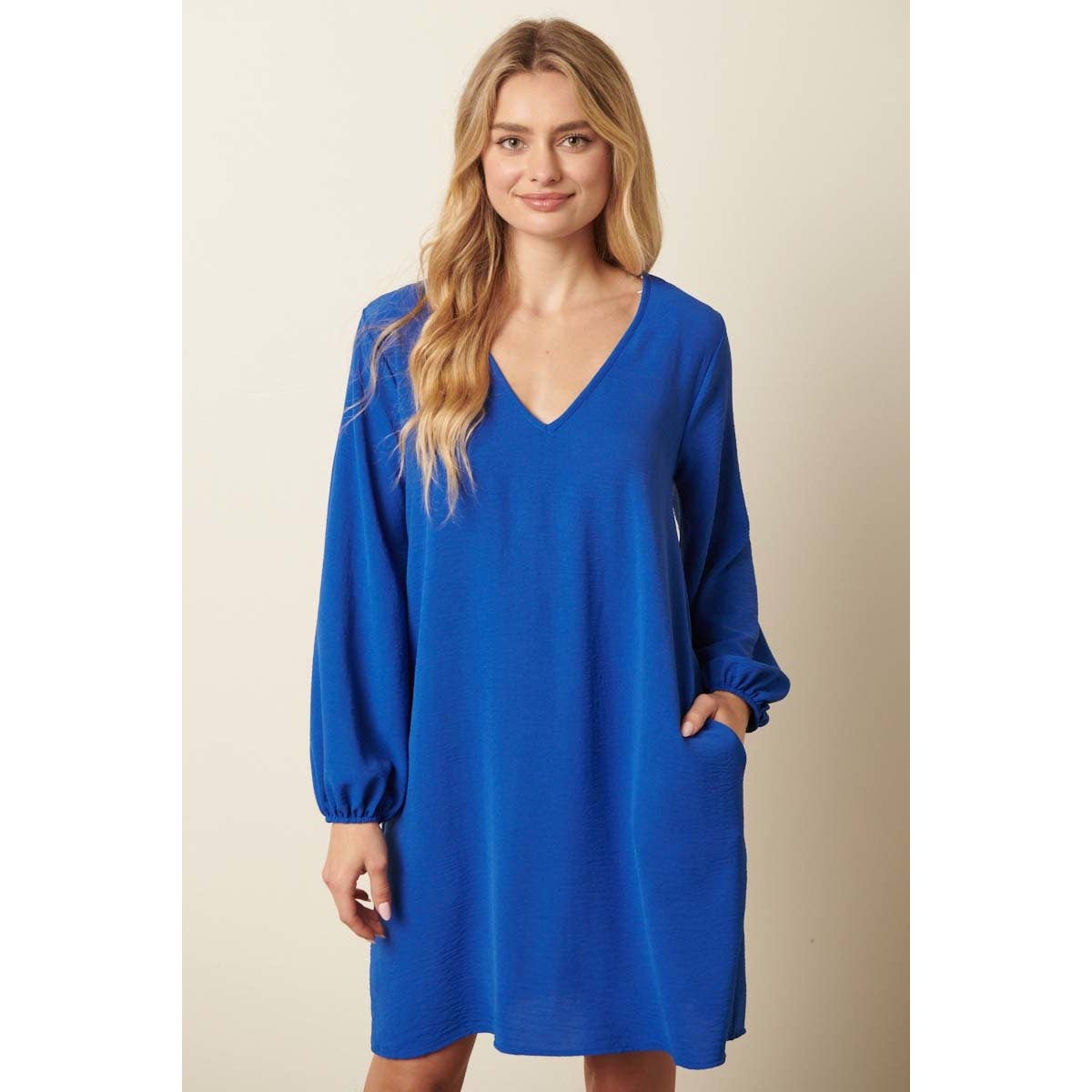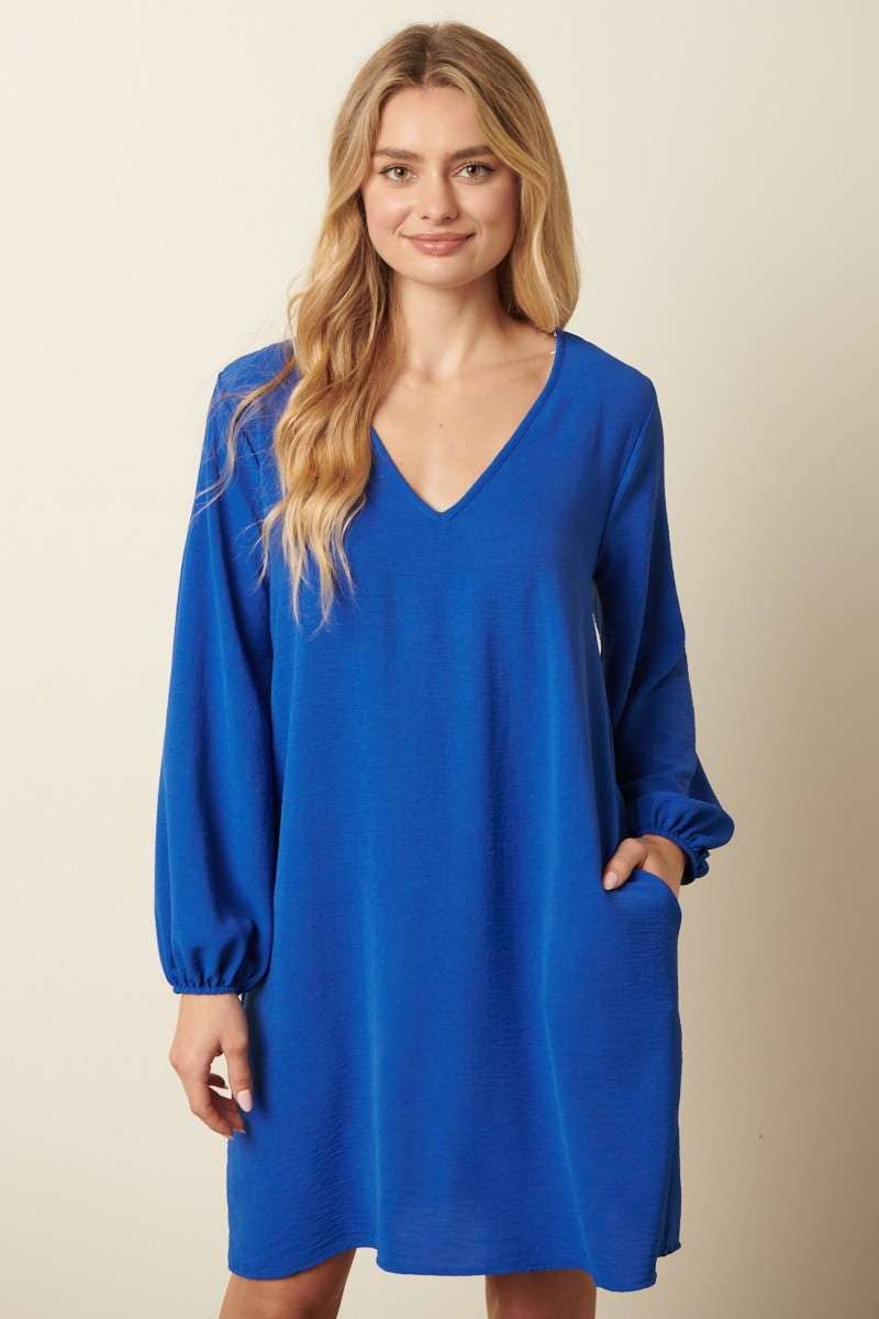 -AIRFLOW WOVEN FABRIC -V NECK -BALLOON LONG SLEEVE -MINI LENGTH -SIDE POCKET