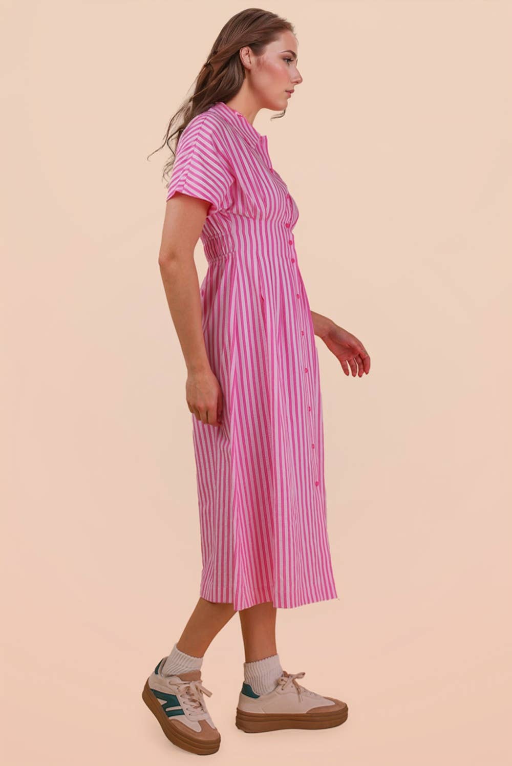 Stripe Midi Shirt Dress PINK
