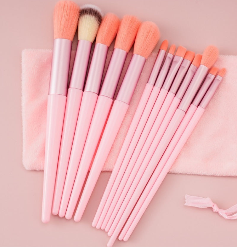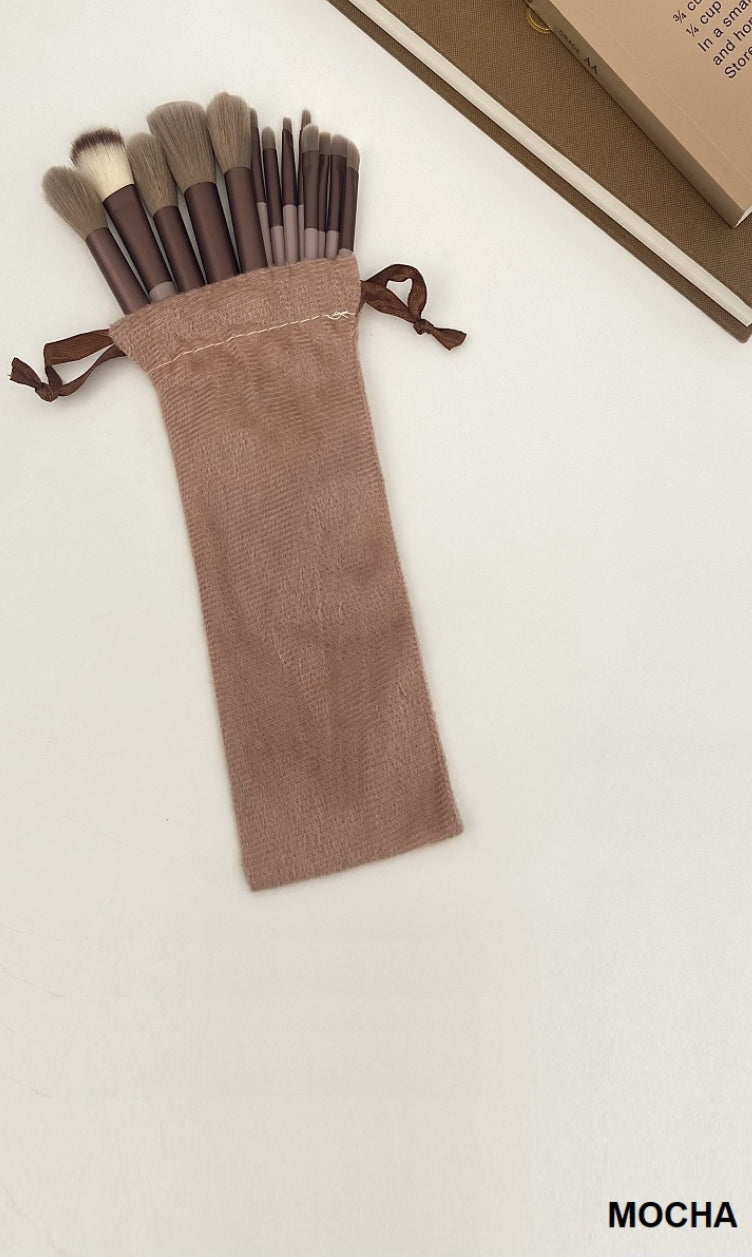 Make up brushes. 13 pieces with storage bag. Lavendar, mocha, pink and sage.