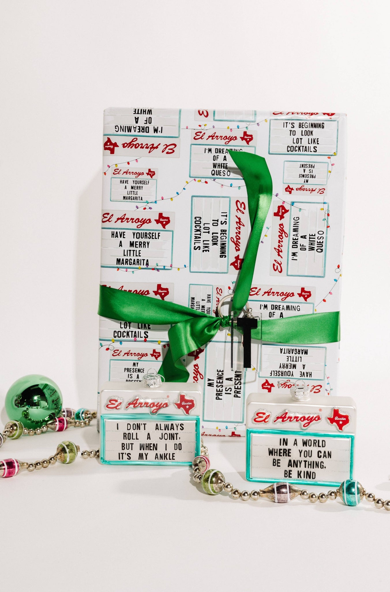 This one of a kind ornament is sure to be a festive hit! Made from mercury glass, this marvelous marquee adds a touch of humor to your tree that can be treasured for years to come. - SIZE: 4.5"W x 1 9/16"D x 3.5"H - Collectible mercury glass ornament - Packaged in a gift-ready box